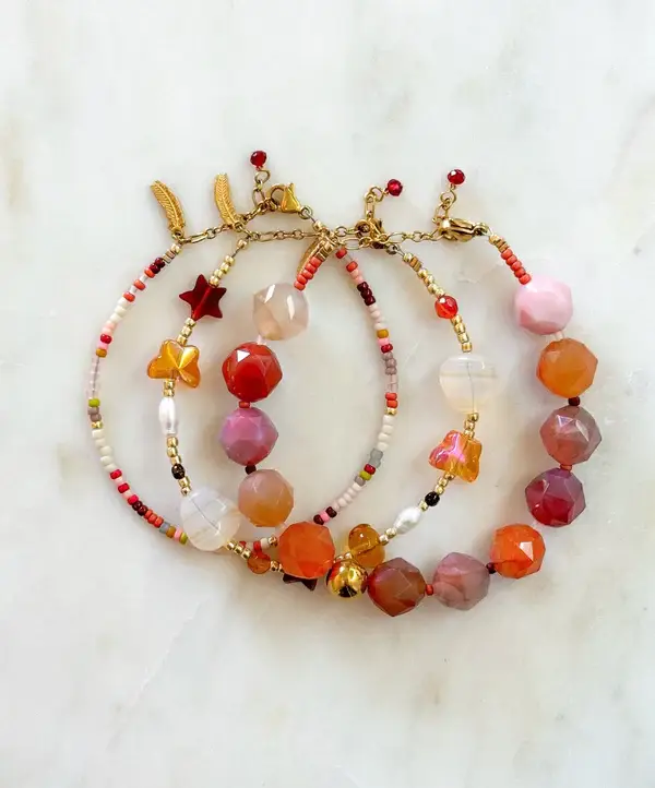 - Gedetailleerd met Botswana Agate kralen, glaskralen en een stainless steel kraal