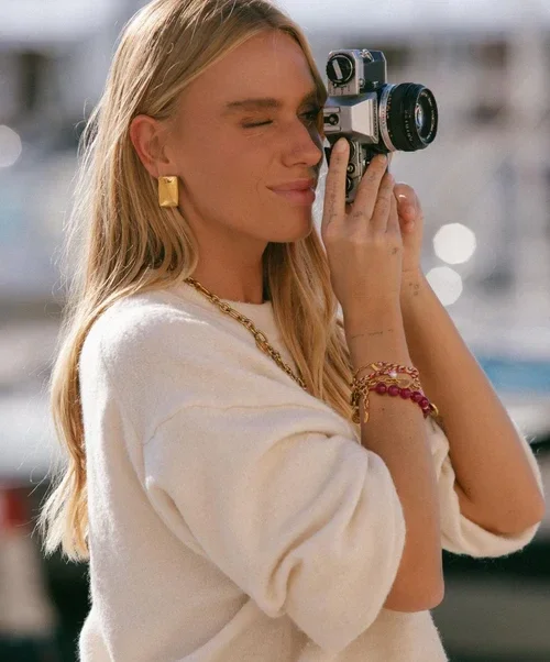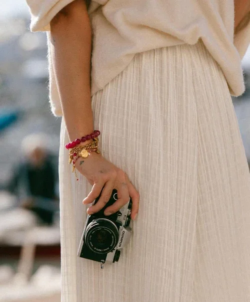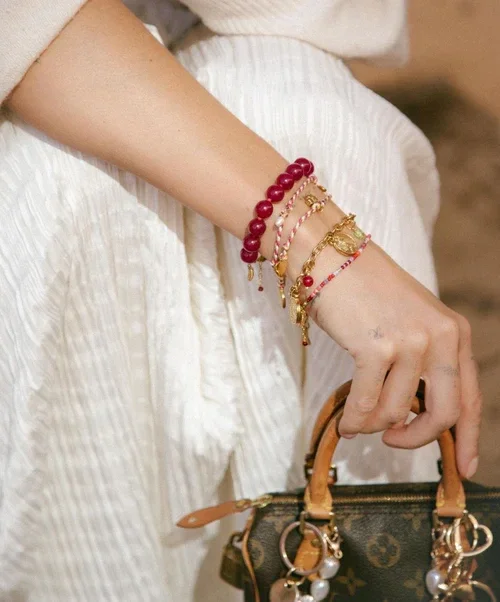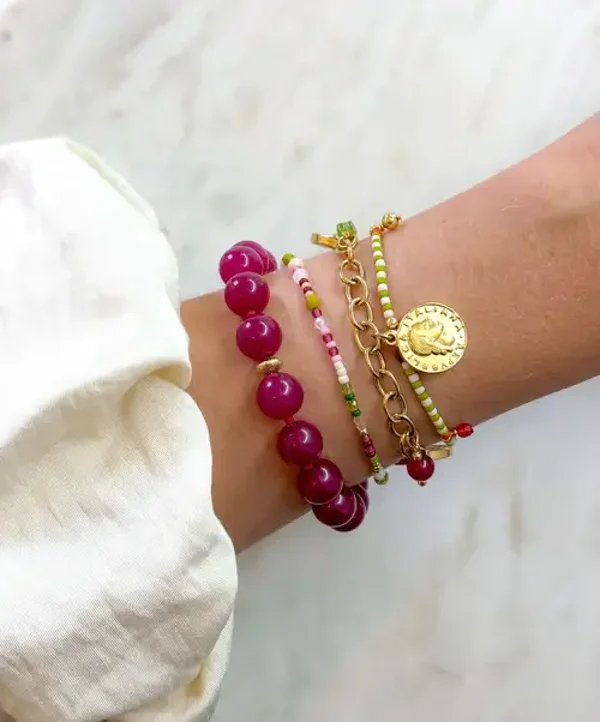 The Cerise Chic Bracelet is made with bordeaux colored beads, the trend color of this season. Perfect for adding a pop of vibrant color to your look.