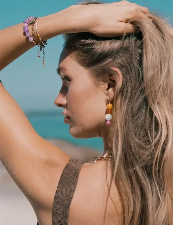 The Waikiki Earrings are inspired by the vibrant spirit of Hawaï. With it's colorful design and chunky beads this is one of Le Veer's new showstoppers. Be prepared to let your ears pop!