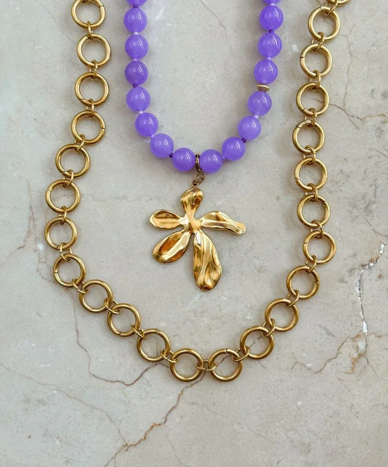 De Violet Essence is zorgvuldig samengesteld met matching kettingen. Shopping the perfect necklace stack was never this easy!
