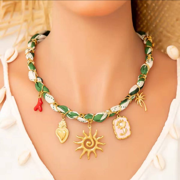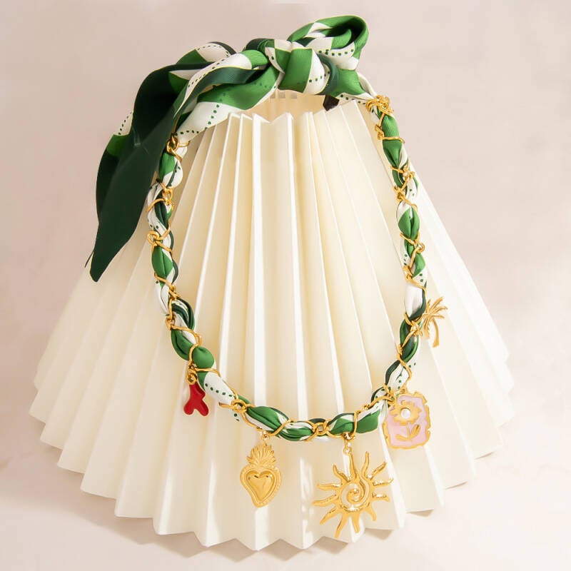 Gemaakt van luxe bandana stof met bedels en glazuur