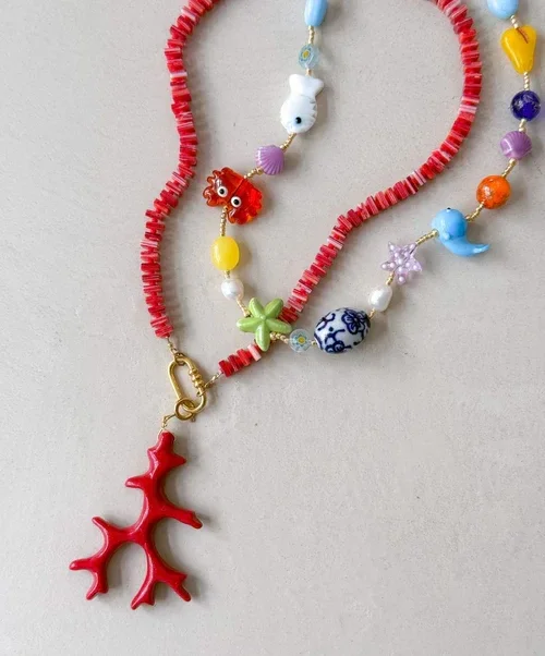 The Lucky Lagoon Necklace is a playful ode to the ocean featuring funky beads. Bursting with coastal charm, this vibrant piece brings the joy of a sun-soaked seaside escape to your neck.
