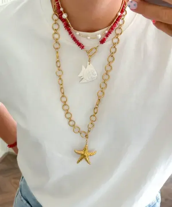 Experience coastal luxury with the Momi Necklace, detailed with golden accents and elegant pearls. Momi means 'pearl' in Hawaiian.