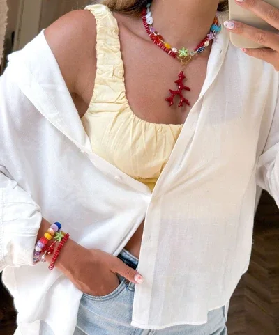 The Lucky Lagoon Bracelet is a playful ode to the ocean featuring funky beads. Bursting with coastal charm, this vibrant piece brings the joy of a sun-soaked seaside escape to your wrist.
