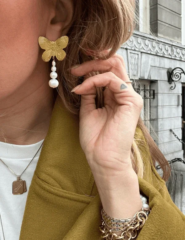 Dream away with these golden Butterfly Pearl Earrings, crafted with freshwater pearls and dreamy butterfly earstud.