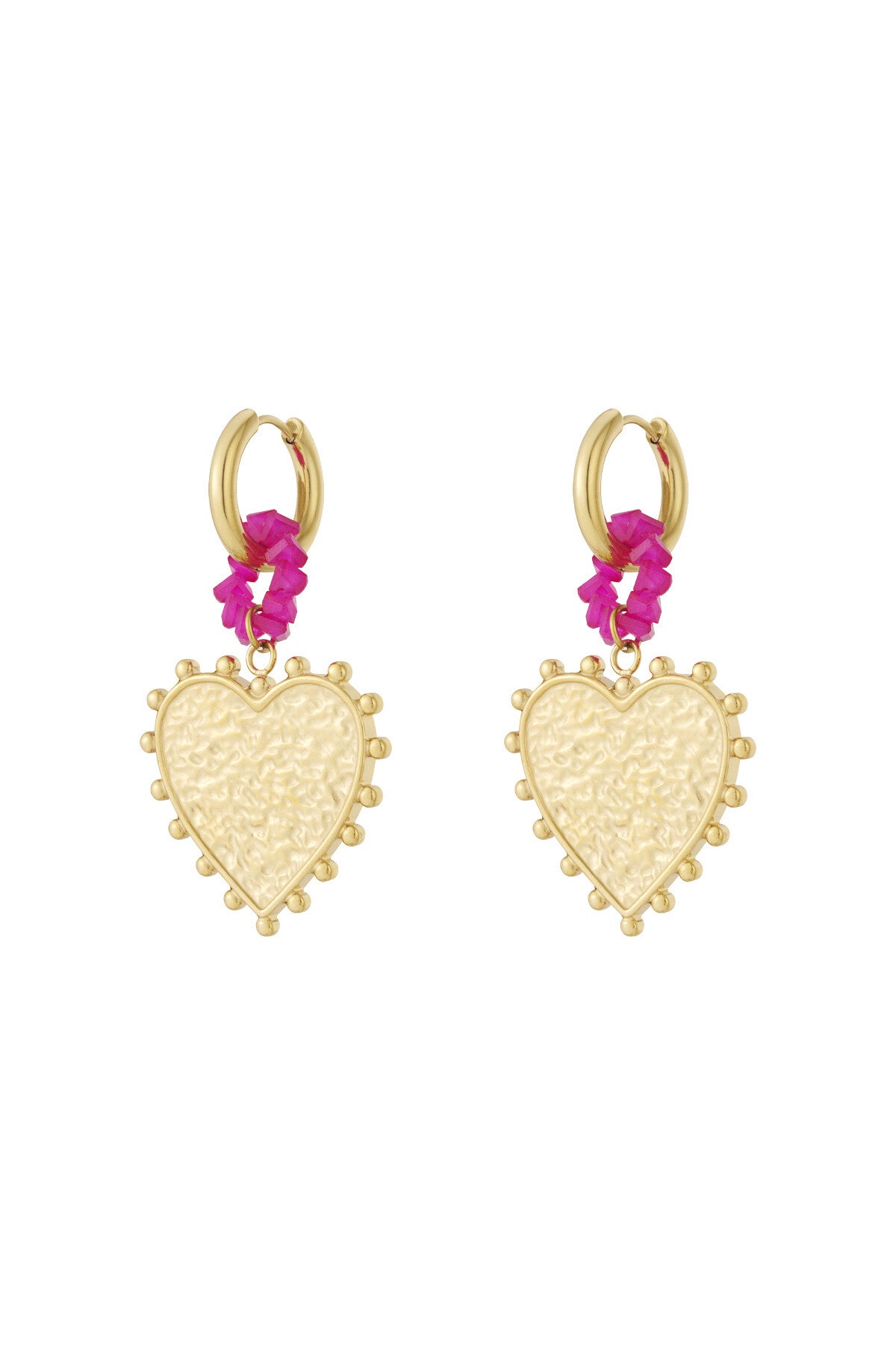 Oorbellen Big love van roestvrij staal, hart en kraaltjes
