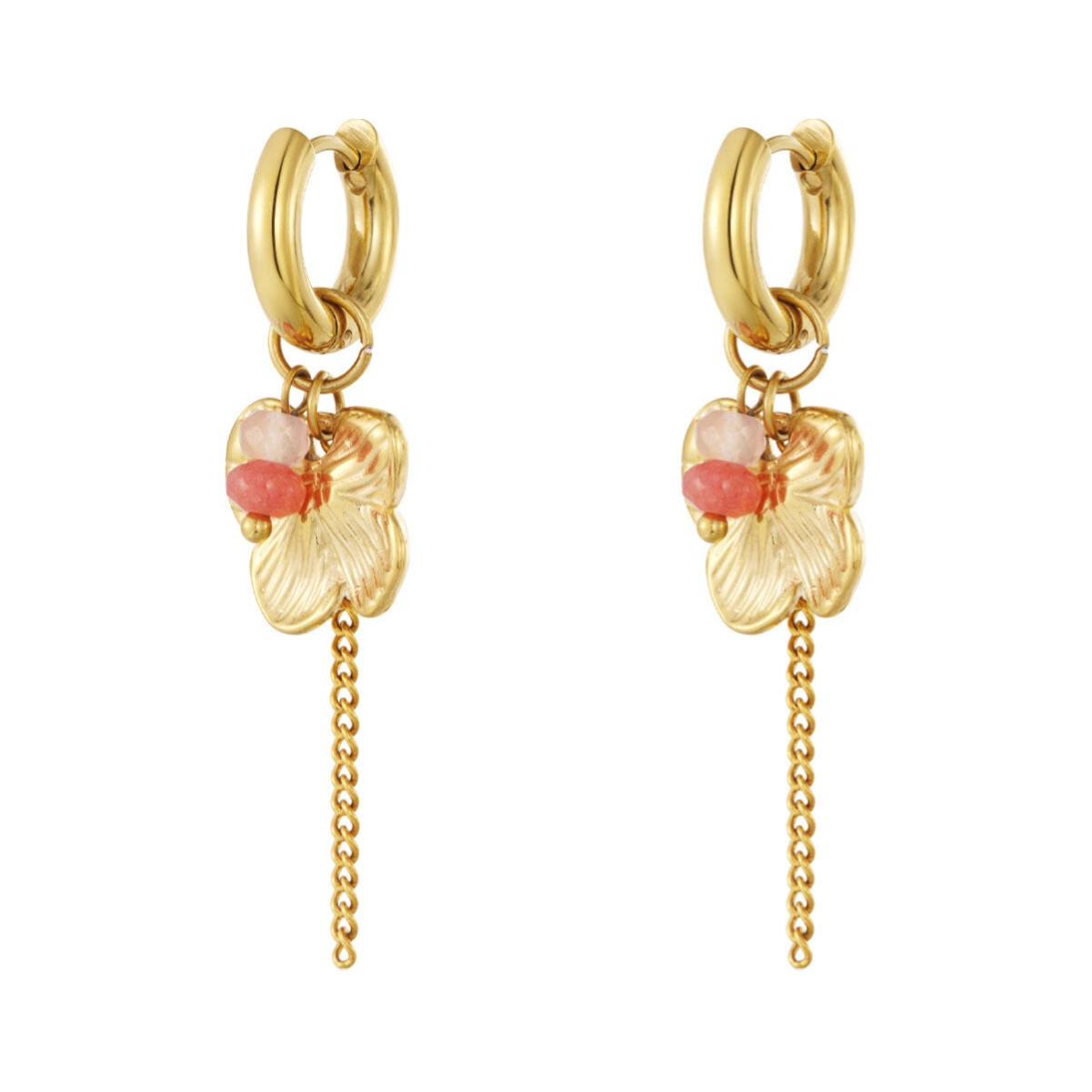 Oorbellen van roestvrij staal met bloem en natuursteen kraaltjes
