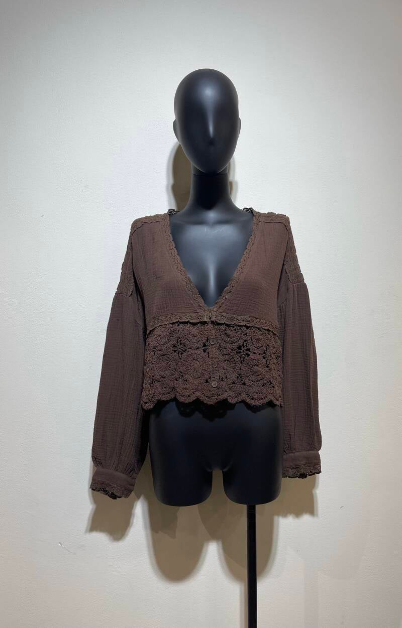 Prachtige katoenen bloese, 2 maten - choco bruin