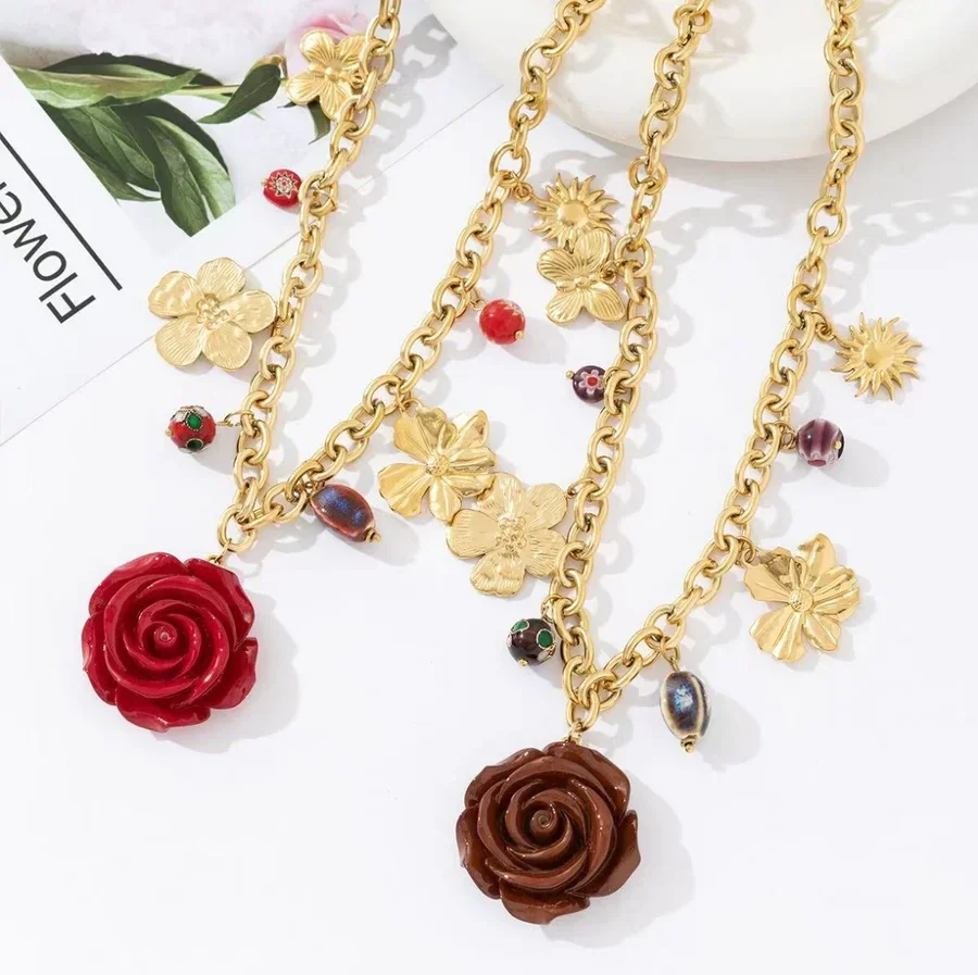 Roses bedel ketting - 2 kleuren, rood of bruin