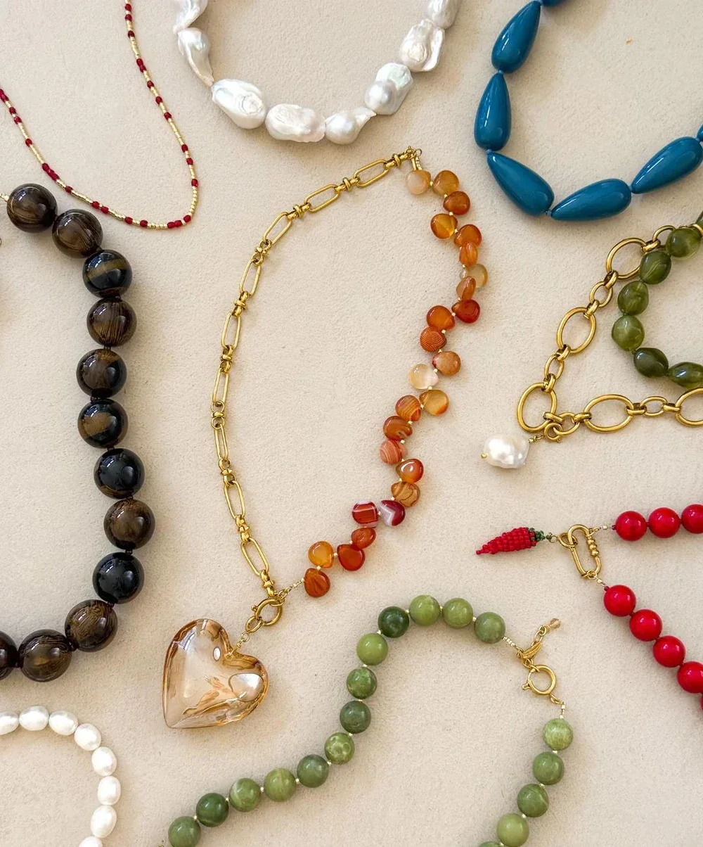 - Gemaakte van jade, zoetwaterparels en glaskralen