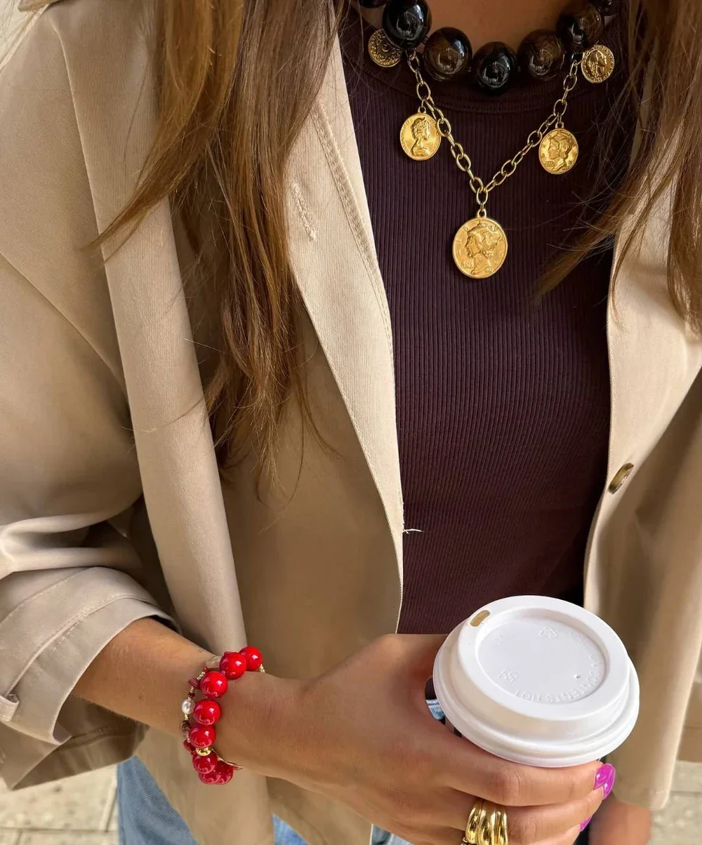 Handcrafted with golden coins, the Fortune Necklace feels like a treasure you can wear every day. A statement design that holds luck and meaning close to you.