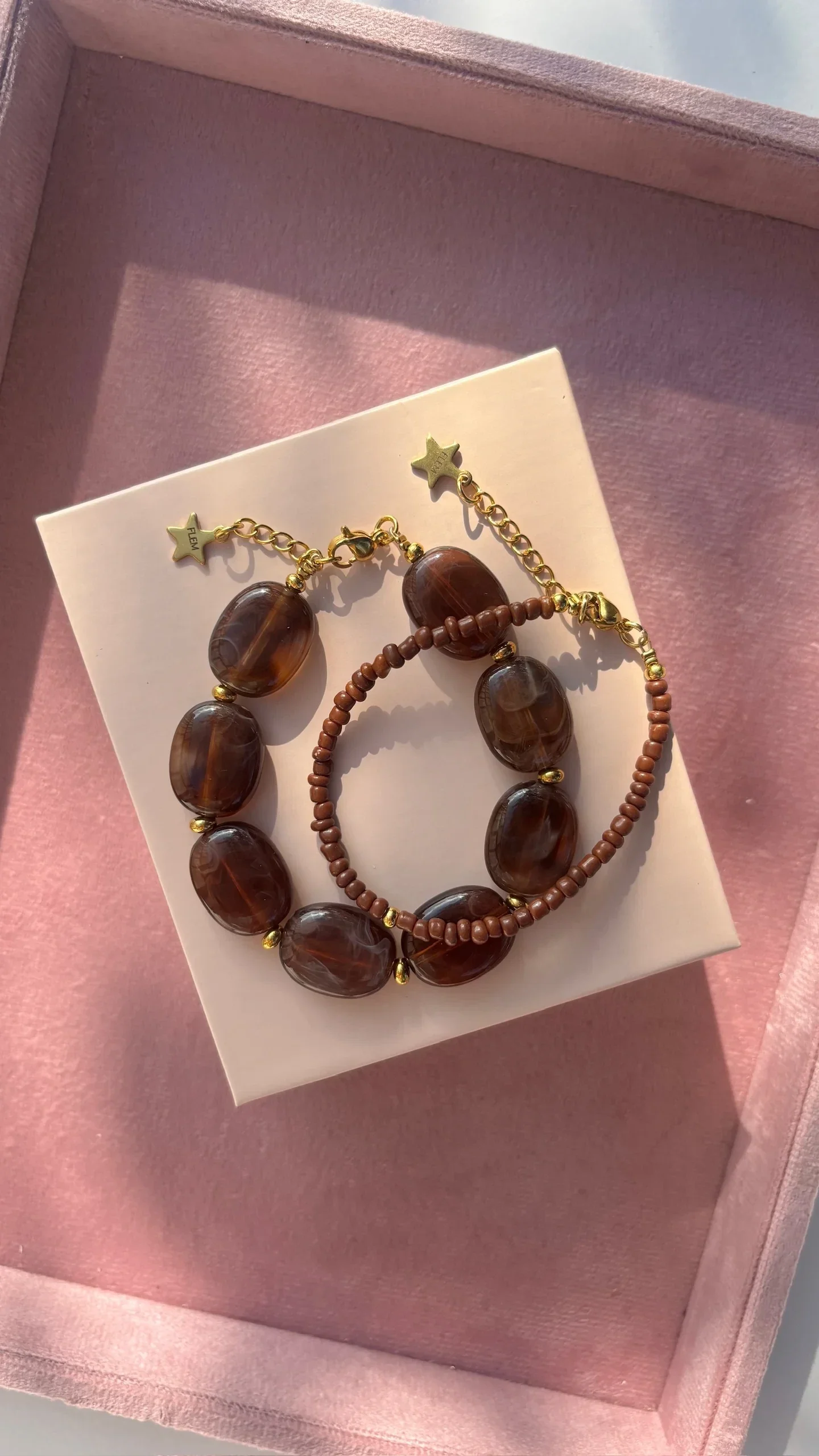 Hoe leuk is deze handgemaakte armband. Perfect om te combineren met andere armbanden! Het gaat hierbij om de dunne bruine armband.