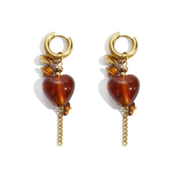 Oorbellen met hartjes stainless steel bruin