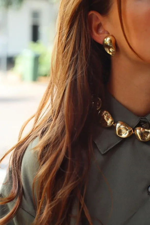 Unleash your bold style with Organic elegance. Elevate your collection with the OCEANE earrings and necklace – the avant-garde statement pieces designed for the woman who dares to stand out. Crafted with organic 24k gold-plated organic shapes, these accessories redefine contemporary elegance, offering a bold and unique addition to your jewelry repertoire.
