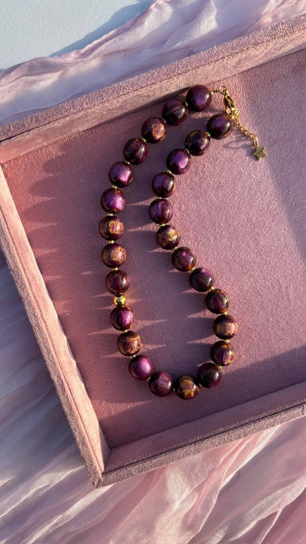 Hoe gaaf is deze ketting! Iedere kraal is uniek en heeft een prachtige schittering. Het gouden detail maakt het helemaal af!