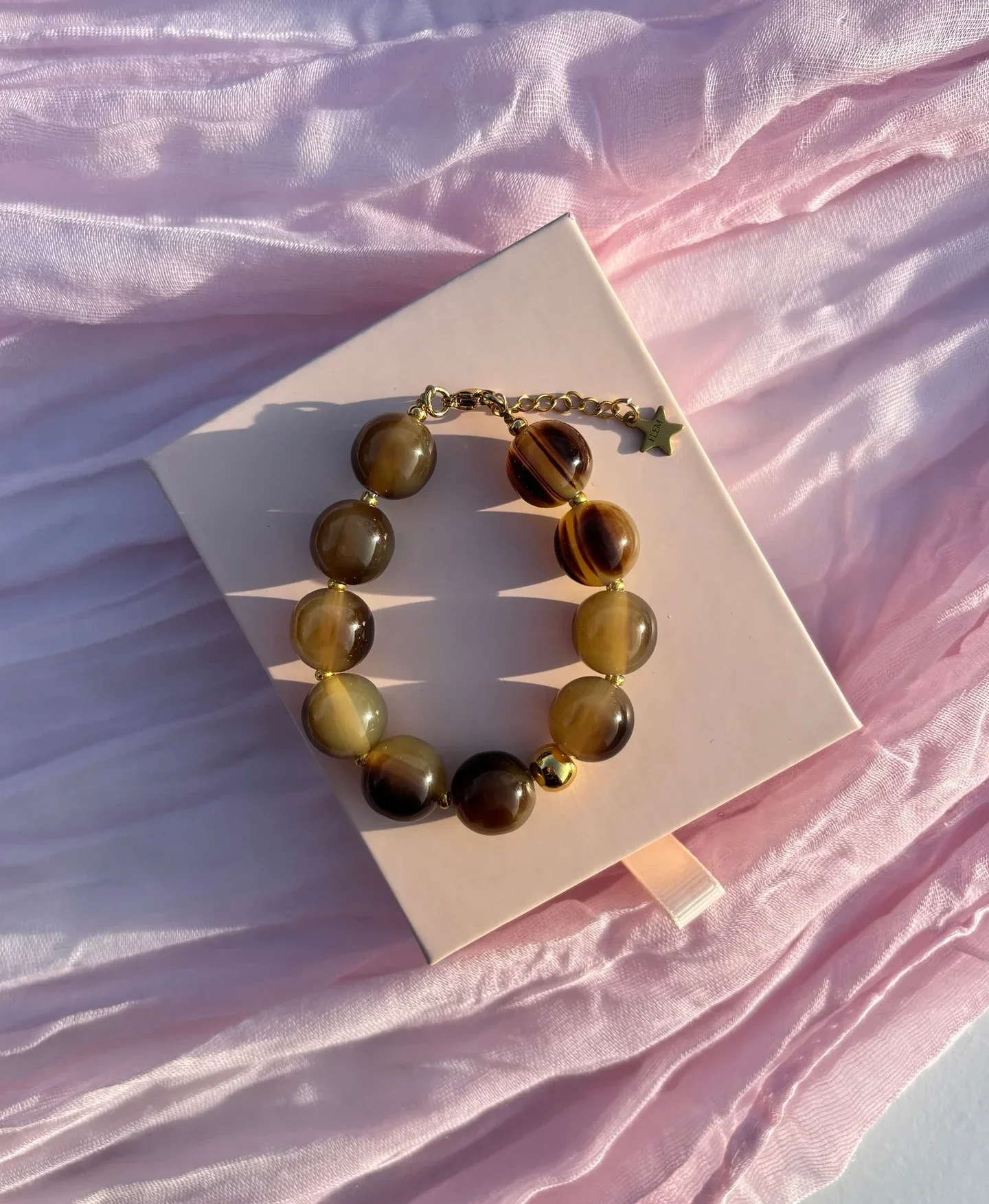 Hoe leuk is deze handgemaakte armband. Perfect om te combineren met andere armbanden! Iedere kraal is weer uniek en heeft een prachtige schittering! Een echte eye-catcher.