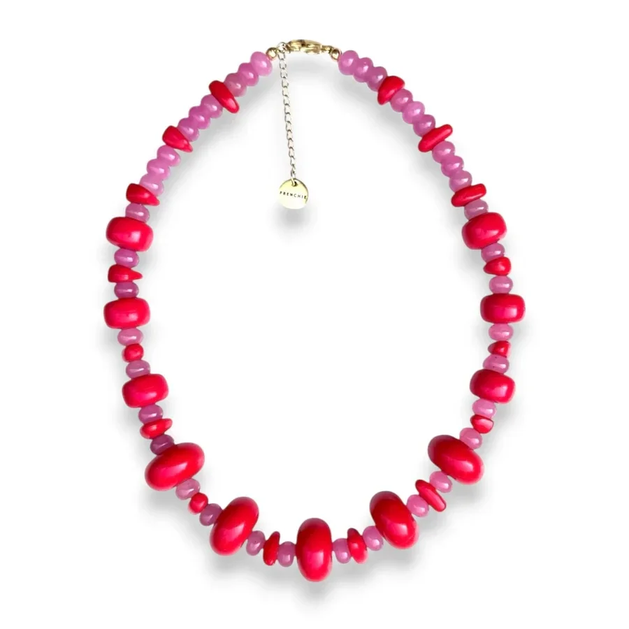 Rouge rebel is echt gecreëerd voor de fashionista's die met kleur durven te spelen. Deze color blocked kralen ketting valt op, en geeft een funky twist aan je outfit.