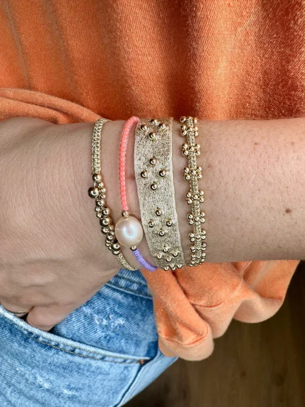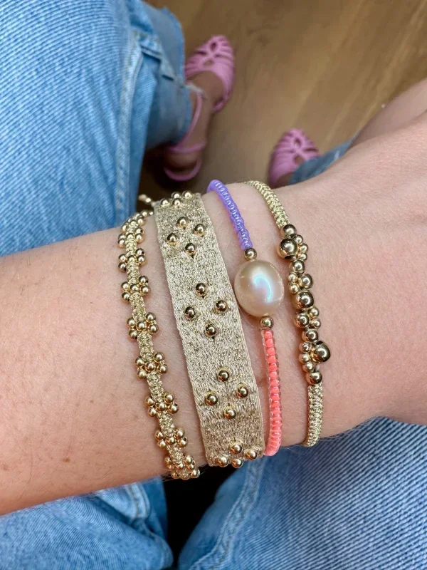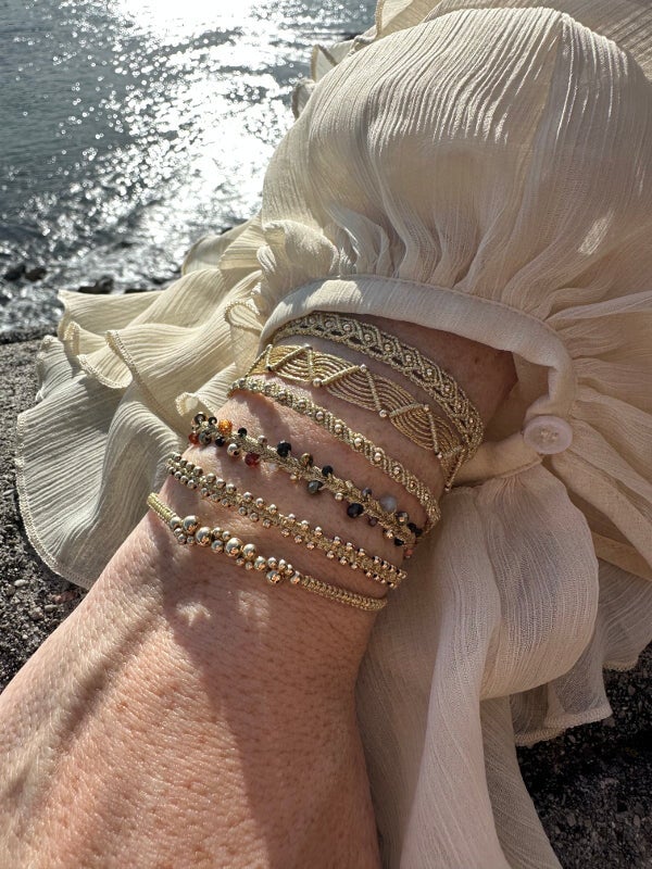 The bubble bracelet is a must have all season long. Our designer Lenny Trines was inspired by Anish Kapoor and one of his sculptures. This handwoven beautiful creation makes this bracelet a unique piece of art using 14k gold filled beads.