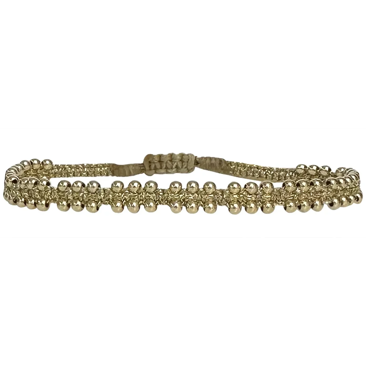 This delicate and beautiful bracelet is handwoven by our team of artisans using 14K gold filled beads and metallic threads.