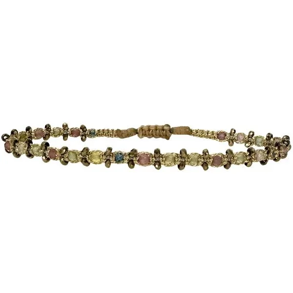 Introducing the Spark Bracelet, a mesmerizing piece that showcases the beauty of artisanal craftsmanship. Handcrafted using delicate metallic threads, this bracelet features a stunning array of watermelon tourmaline semi precious stones and shimmering hematite stones, creating a radiant and elegant look.