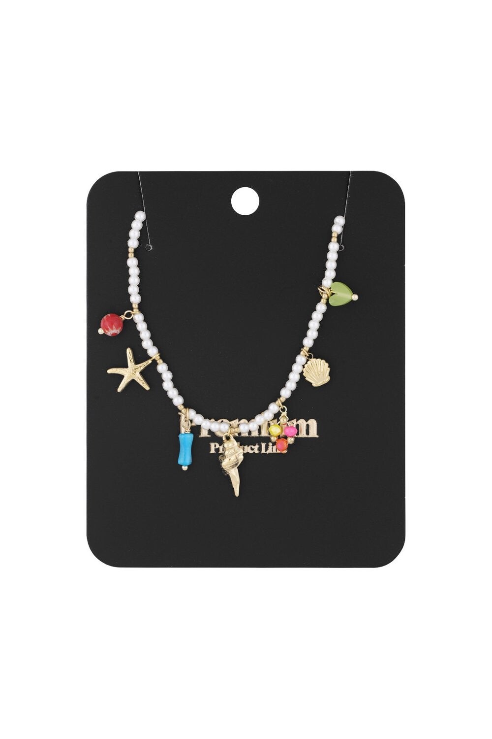 Stainless steel bedelketting met imitatie pareltjes, acryl, hematite en natuursteen