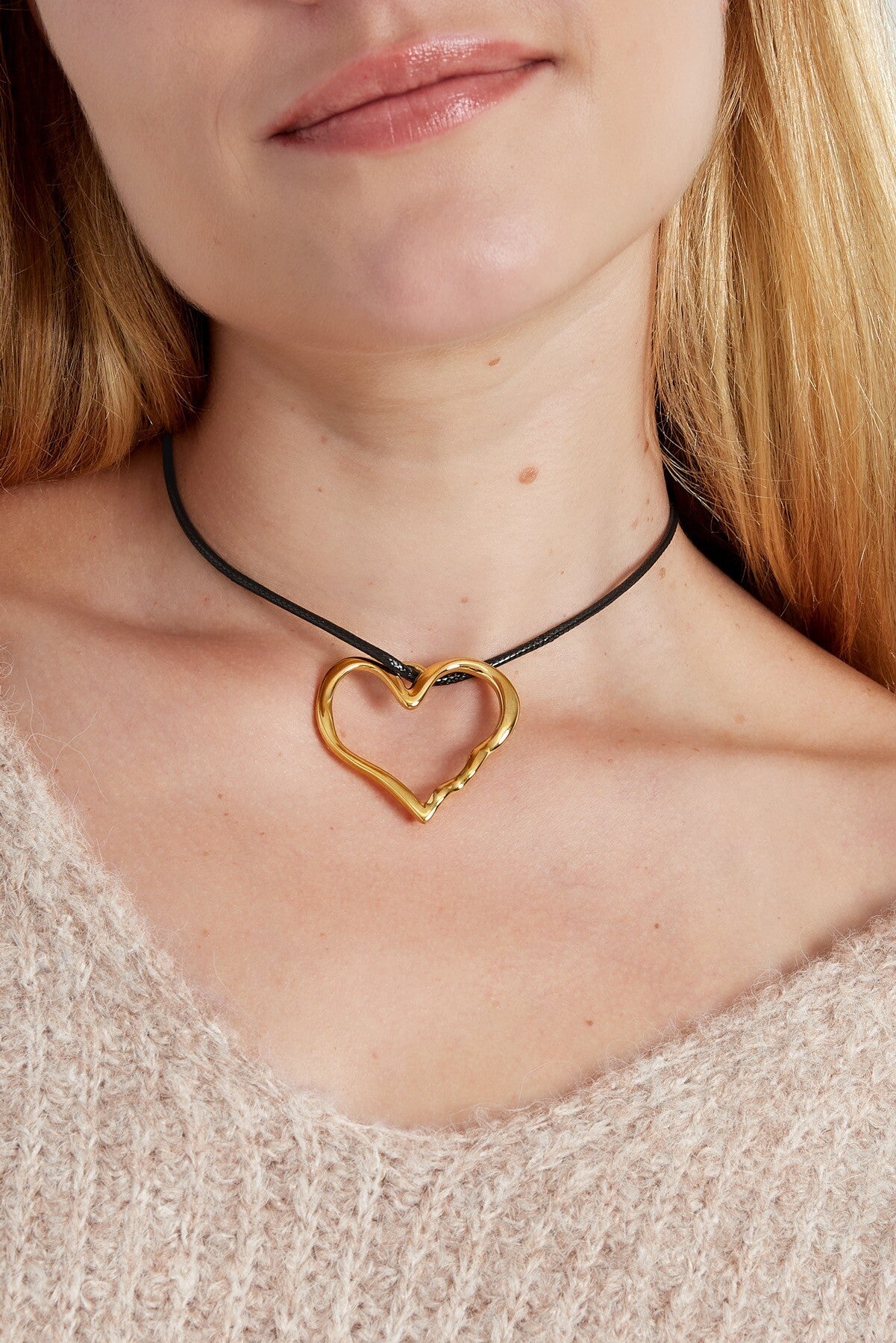 Touw Ketting groot Hart Stainless steel