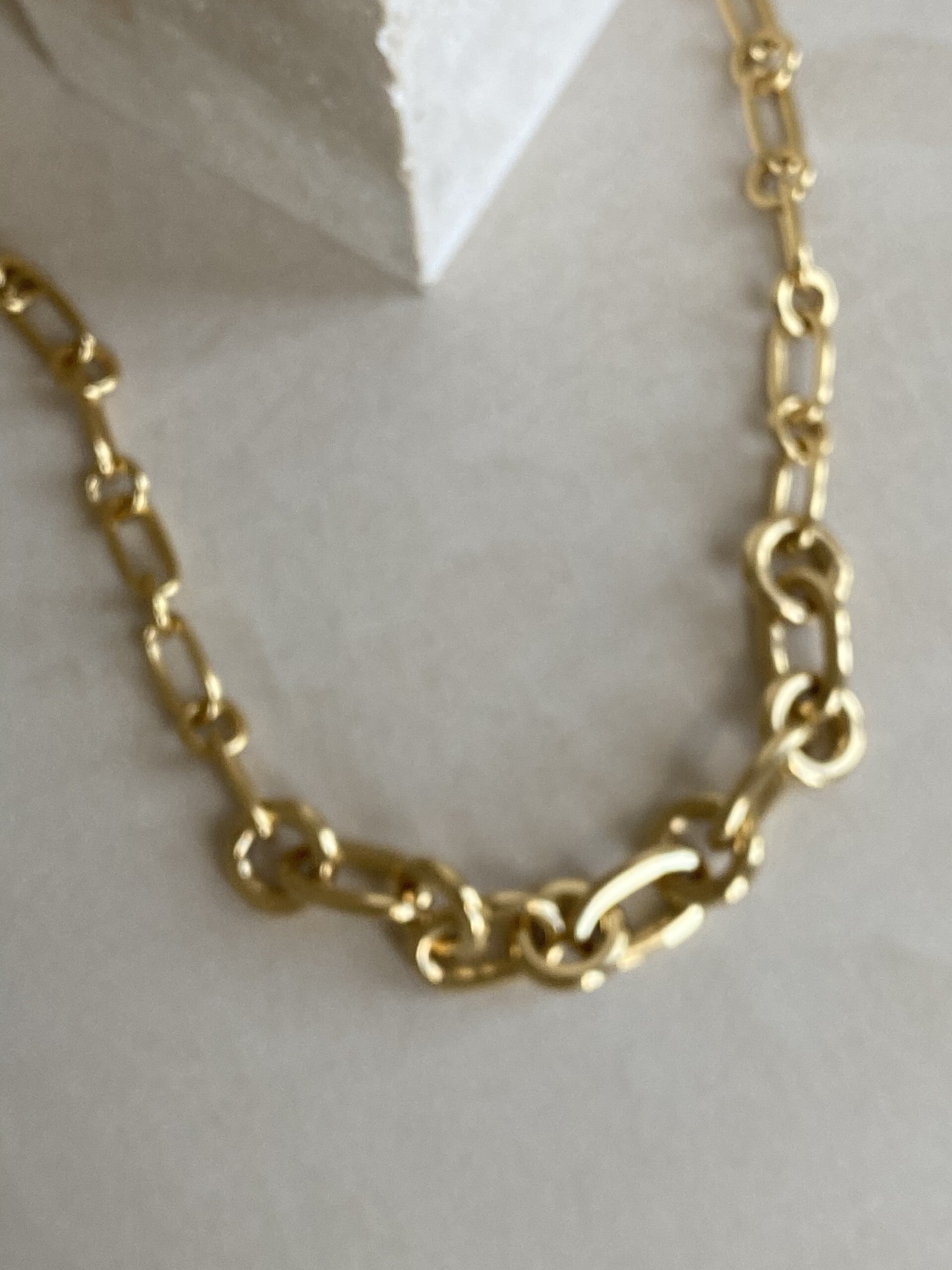 This 24k gold plated chain features dynamic oval-shaped links, attached by a polished design of small hoops.