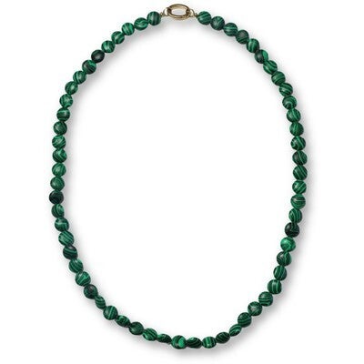 Deep green malachite beads with natural striping. Rich, luxurious and eye-catching.