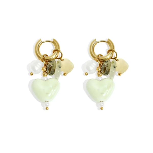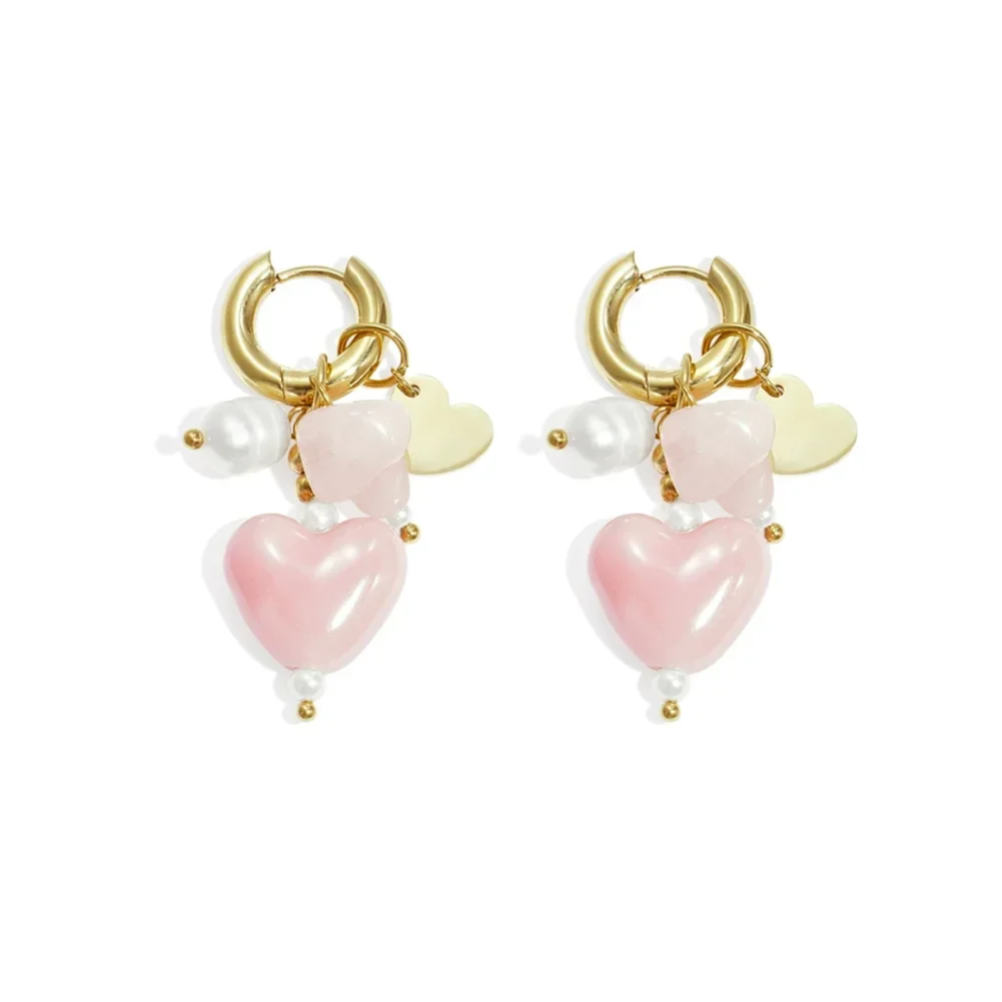 Stainless steel Hartjes oorbellen in oranje, rose, bruin en lichtgroen