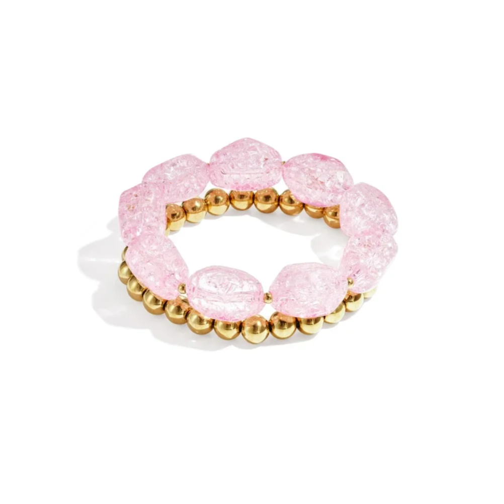 Stainless steel met Acryl stretch armband in baby rose en - blauw