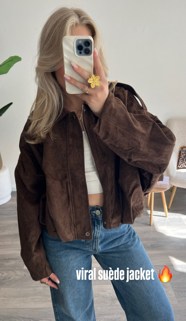 Bruin suedine jasje in 3 maten