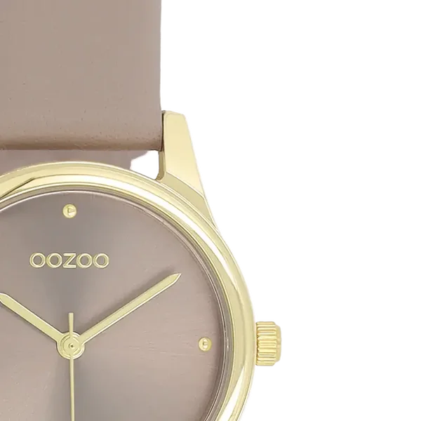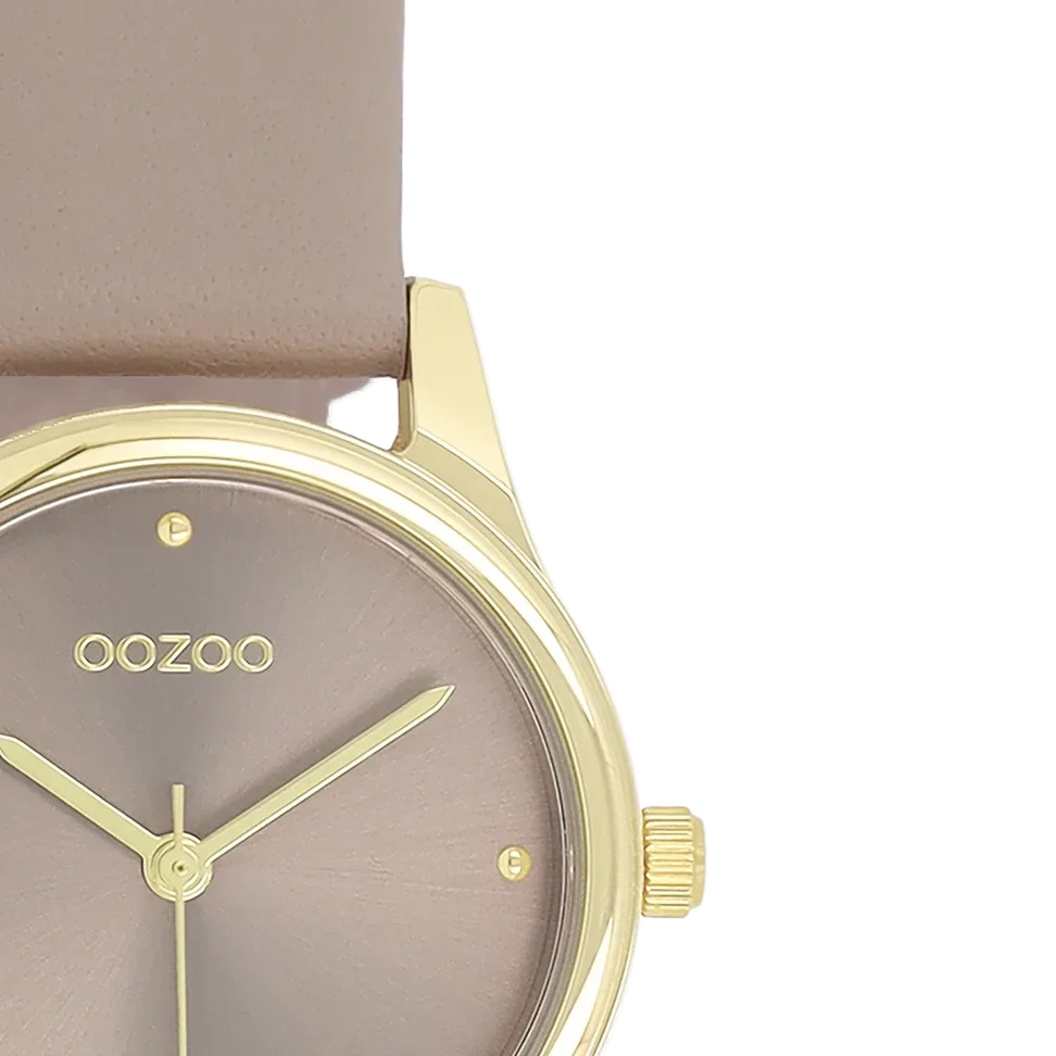 Gold coloured OOZOO watch with taupe leather strap - C11625