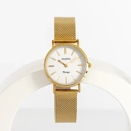Verfijning en elegantie zijn twee elementen van onze prachtige OOZOO Vintage Classics. Dit klassieke ronde ontwerp met een eigentijdse twist is voor iedereen. Dit dameshorloge is de perfecte combinatie van comfort en mode met zijn 28 mm gouden metalen horlogekast en witte wijzerplaat. Het gouden metalen mesh-bandje maakt dit horloge tot een tijdloze klassieker die je bij elke gelegenheid kunt dragen. De wijzerplaat heeft gouden streepjes als cijfers en gouden wijzers. Dit horloge is een must-have voor dagelijks gebruik. Het mineraalglas ligt in een slanke metalen horlogekast van 6,9 mm met IP-coating. De C20231 heeft een roestvrijstalen achterkant en is nikkelveilig. Dit horloge heeft een Japanse beweging van 2ATM en wordt gedekt door een garantie van 2 jaar (zie sectie 3 van ons Beleid voor terugbetalingen, verzending & garantie).