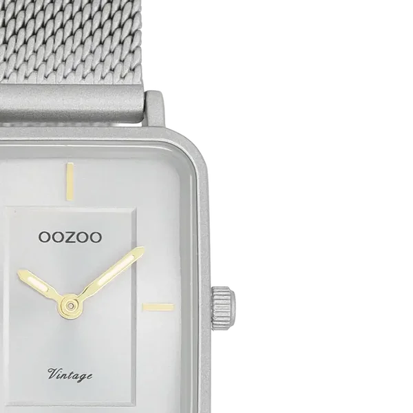 De klassieke look blijft centraal staan in deze trendy serie en daarom is dit OOZOO vintage rechthoekig design met een speelse knipoog dé musthave van het seizoen! Dit unisex horloge is de perfecte combinatie van comfort en fashion met zijn 22x30 mm licht grijze matte horlogekast en licht grijze sunray wijzerplaat. De wijzerplaat heeft goudkleurige strepen tijdsaanduidingen en goudkleurig/witte kleurige wijzers. De licht grijze matte metalen mesh armband maakt dit horloge tot een trendy accessoire dat je elke dag kunt dragen. Dit horloge voegt de sprankeling toe aan je outfit. Het mineraalglas ligt in een 7,2 mm dunne metalen horlogekast met IP-plating. De C20383 heeft een stainless steel achterplaat en is nikkel-safe. Dit horloge heeft een 2ATM Japans uurwerk en wordt gedekt door een garantie van 2 jaar (zie sectie 3 van onze Refund, shipping & warranty policy)