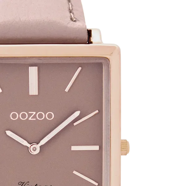 De klassieke look blijft centraal staan in deze trendy serie en daarom is dit OOZOO vintage vierkante design met een speelse knipoog dé musthave van het seizoen! Dit unisex horloge is de perfecte combinatie van comfort en fashion met zijn 37x31 mm rosé goudkleurige metalen horlogekast en oud roze wijzerplaat. De wijzerplaat heeft rosé goudkleurige strepen tijdsaanduidingen en bijpassende kleurige wijzers. De oud roze gestikte leren band maakt dit horloge tot een trendy accessoire dat je elke dag kunt dragen. Dit horloge voegt de sprankeling toe aan je outfit. Het mineraalglas ligt in een 6,9 mm dunne metalen horlogekast met IP-plating. De C8187 heeft een stainless steel achterplaat en is nikkel-safe. Dit horloge heeft een 2 Japans uurwerk en wordt gedekt door een garantie van 2 jaar (zie sectie 3 van onze Refund, shipping & warranty policy).