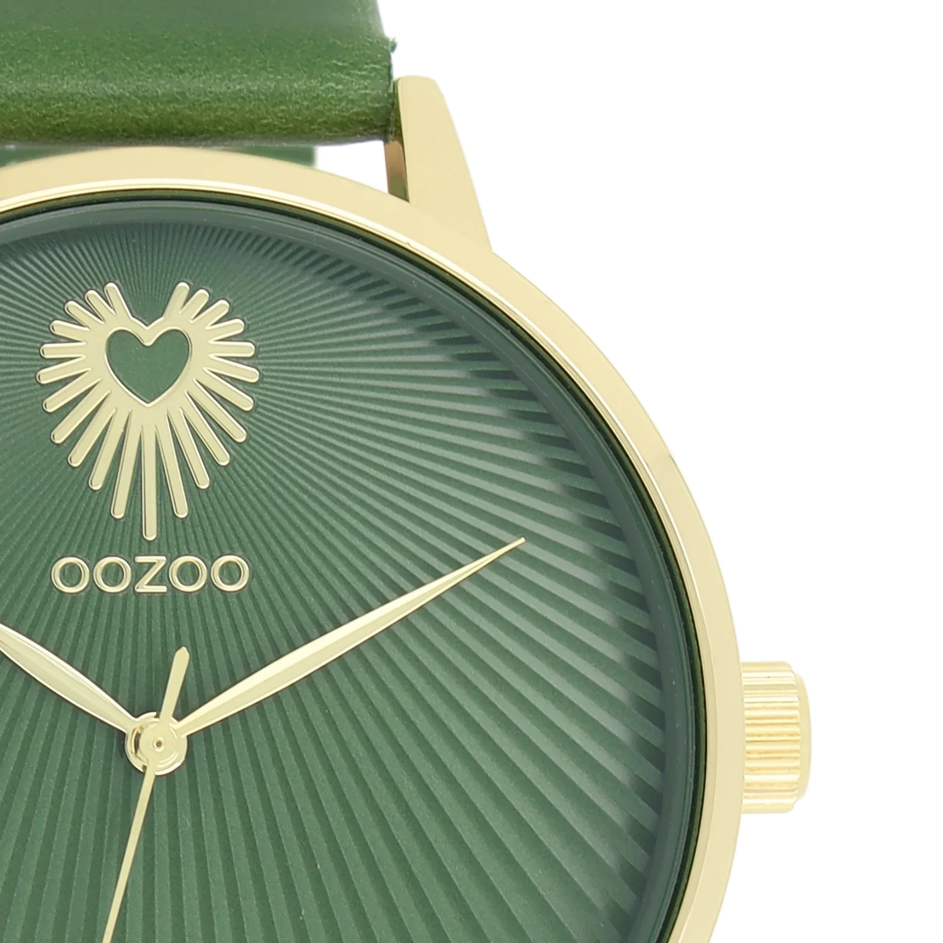 Oozoo Watch - Goudkleurige OOZOO horloge met groene leren band - C11344