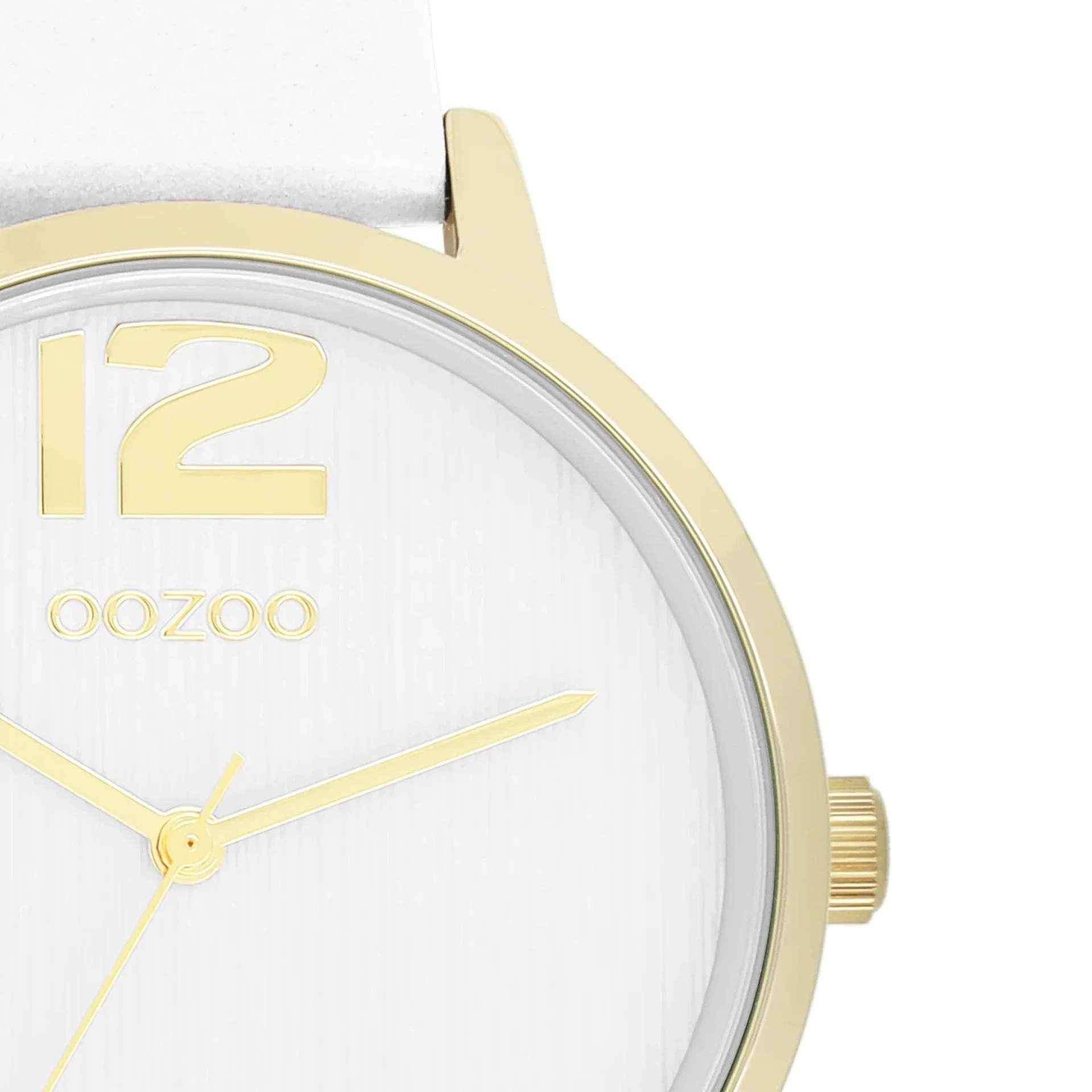 Oozoo Watch - Goudkleurige OOZOO horloge met witte leren band - C11340