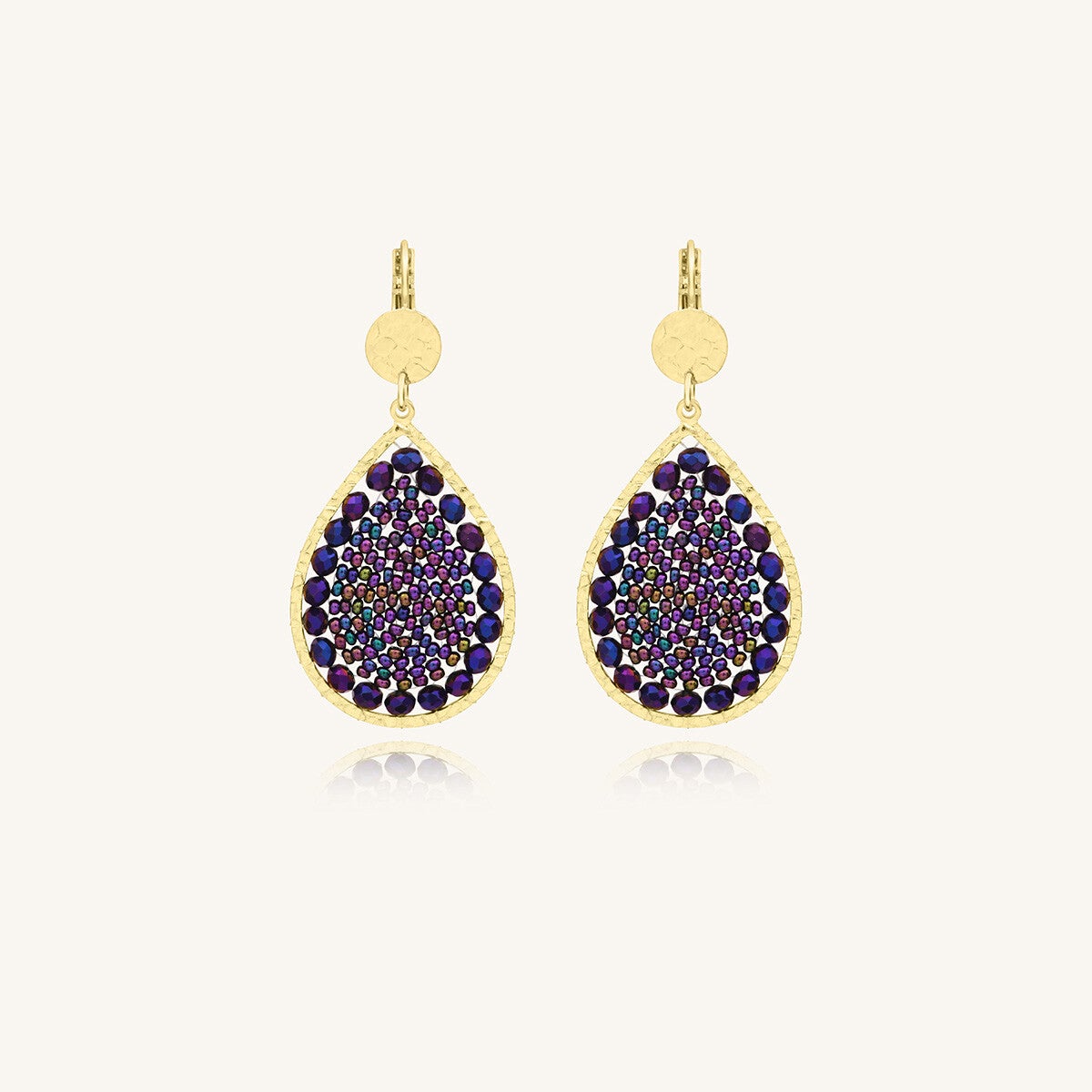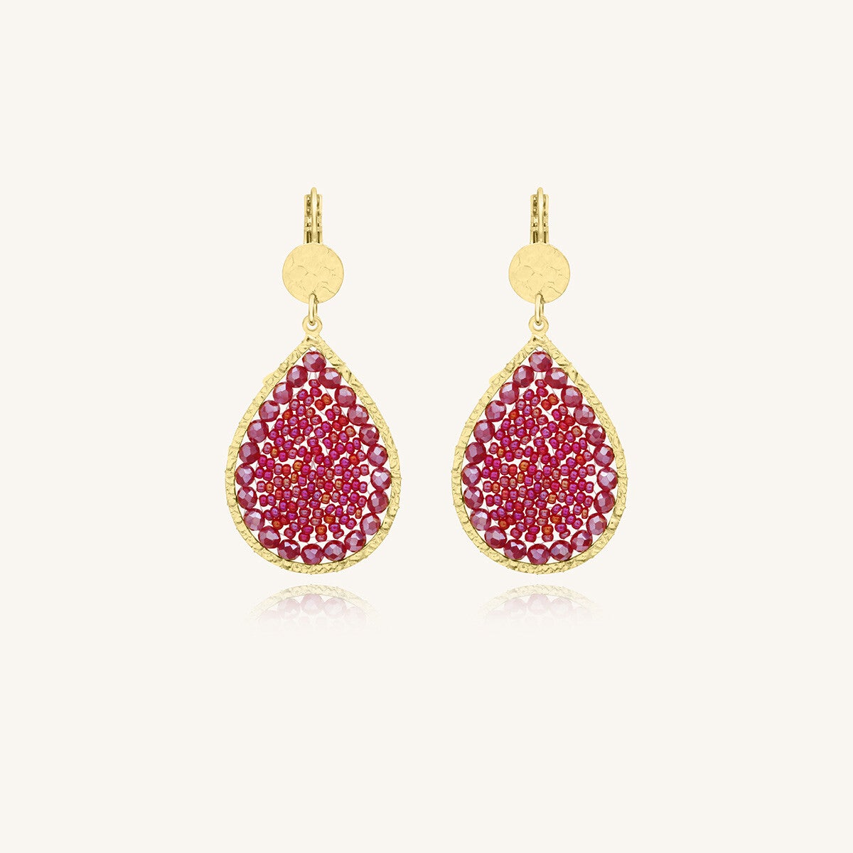 Hun vergulde zetting, uitgerust met een slaapsluiting, wordt gecombineerd met een zorgvuldig met de hand geweven kralenwerk om alle fijnheid van deze lichtgevende fluistering in de holte van het oor te onthullen.