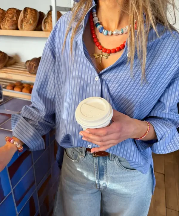 Gemaakt van aquamarijn, agaat, zoetwaterparels, bergkristal en resin