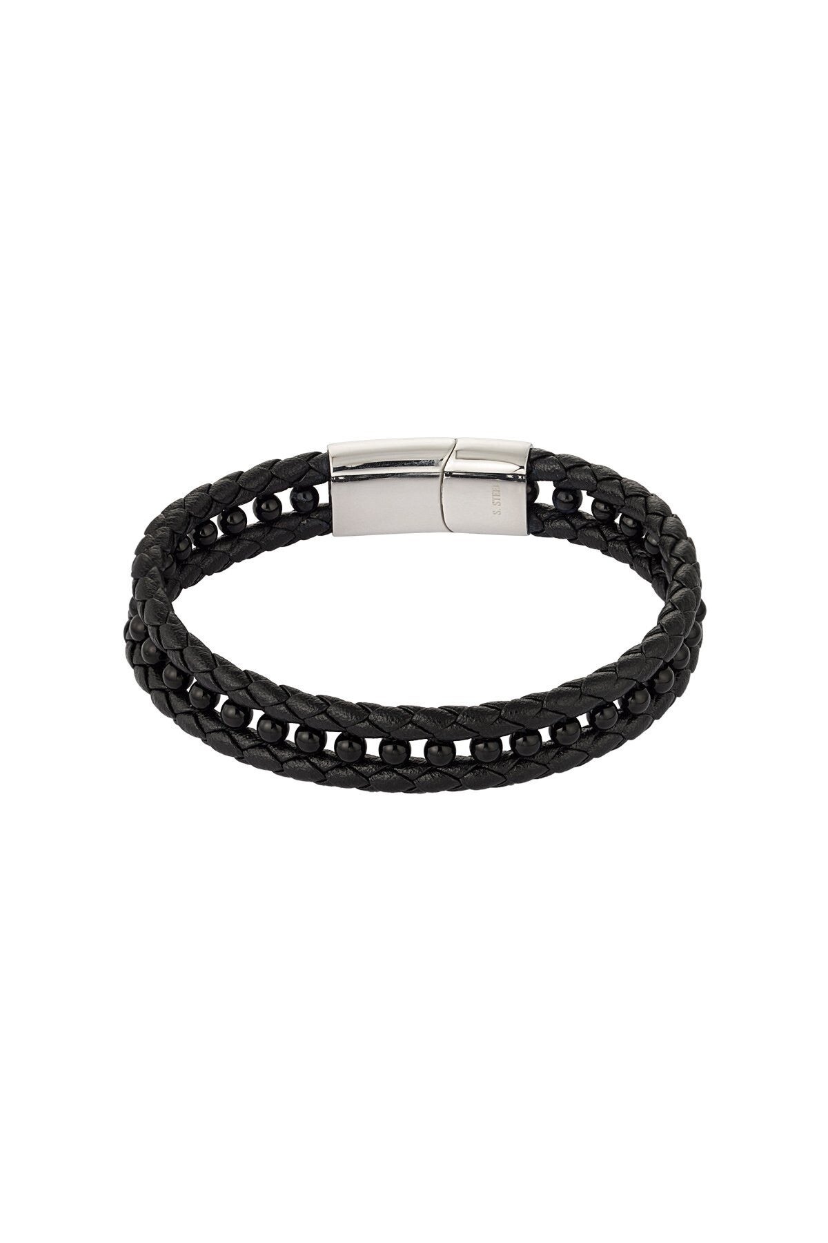 Herenarmband roestvrijstaal leer met natuursteen zwart