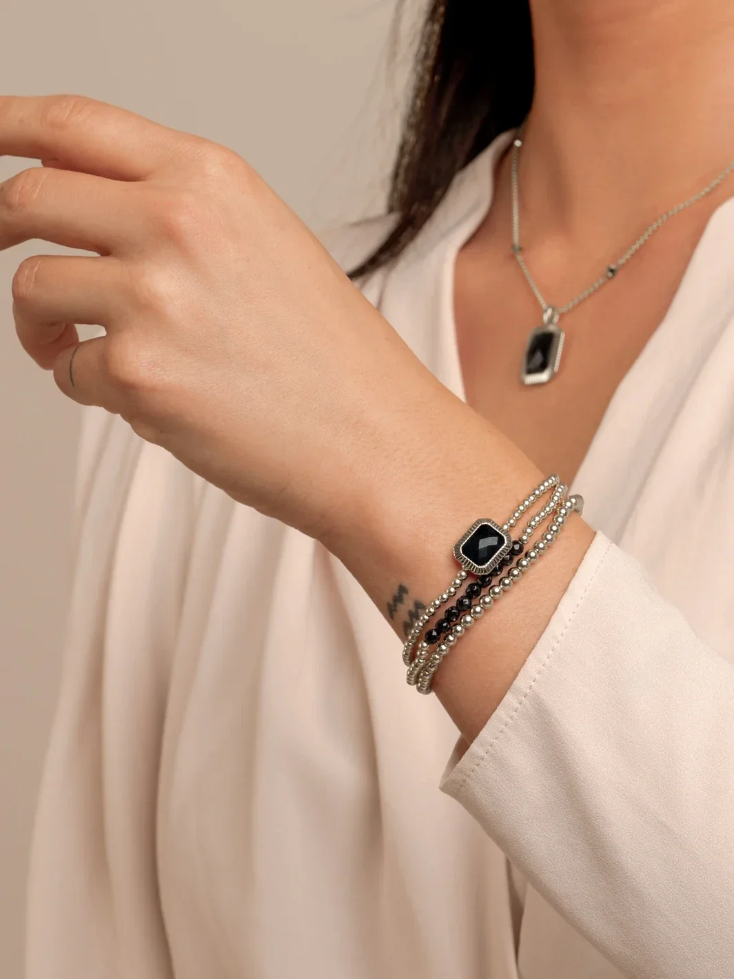 Een echte eyecatcher aan jouw pols is de Baguette armband met Onyx. De armband is tijdloos en past bij elke gelegenheid. Combineer deze armband met andere Onyx kralenarmbanden of met de Onyx Baguette pendant voor een complete look.