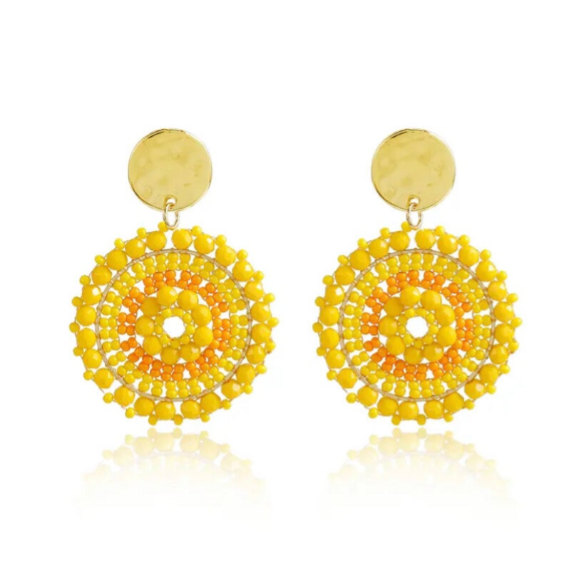 Oorbellen statement miyuki kraaltjes, geel met goud