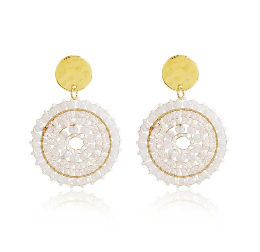 Oorbellen statement miyuki kraaltjes, wit met goud