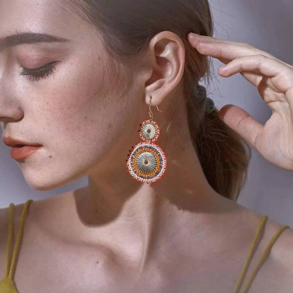 OORBELLEN STATEMENT GOUD MET KLEINE KRAALTJES, Japanse kristallen met rice beads